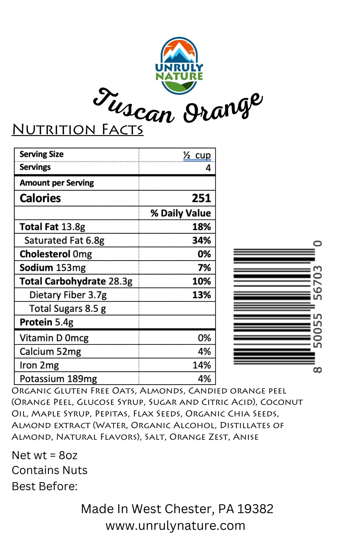 Orange, anise, and sweet almond come together with a blissful combination of flavor. This delightful trio invokes the taste of a cocktail on an Italian terrace, without the alcohol. Transport yourself, satisfy your hunger, and fuel your body with a bag of this by your side anywhere you go.